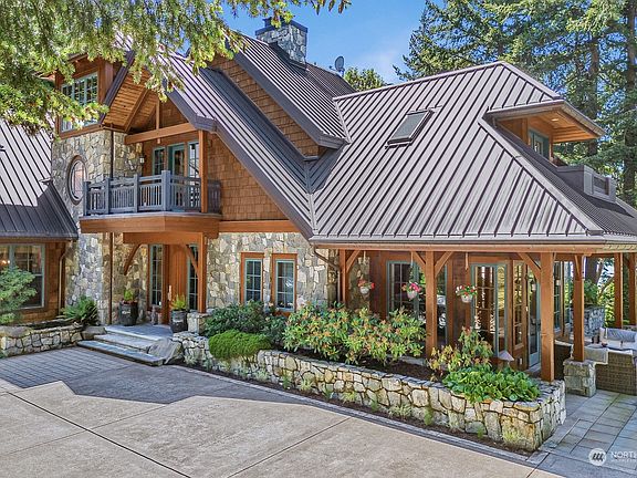 A masterpiece of Pacific Northwest craftsmanship perched in the exclusive Chuckanut Crest community, offering breathtaking 270-degree island and ocean vistas. This extraordinary residence showcases over 30,000 square feet of reclaimed massive fir beams in a stunning timber-frame design. A soaring thirty-foot Montana Aspen granite fireplace anchors the great room, while custom-built doors, hand-forged ironwork, and artisanal lighting fixtures reflect unparalleled attention to detail. The main level spans 3,600 square feet of seamless living space, featuring an updated chef's kitchen and sophisticated entertaining areas. Serenity.