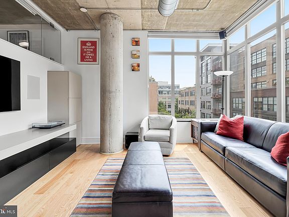 Don't miss this opportunity to own a modern loft condo that effortlessly blends contemporary design with urban living. With its soaring ceilings, abundant natural light, and prime location, this property is truly a gem on one of Logan Circle's most coveted blocks. The open-concept layout with rare dual exposure bump-out seamlessly integrates the living, dining, and kitchen areas, providing an ideal space for entertaining guests. The primary bedroom is a tranquil retreat, boasting floor-to-ceiling windows and a large custom walk-in closet. The loft space has been thoughtfully converted to a spacious bedroom with custom Polifform closets and motorized blinds. 1 Private Garage Parking Space Included Building: Full-Time Concierge & Rooftop Deck