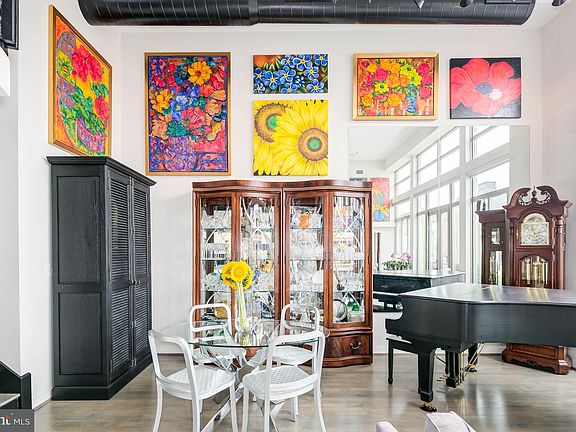 Tax Records SqFt is inaccurate--3rd party measured to 1550 sqft. Captivating multi-level loft w/ 2BR + Den/2FB on top floor. 15 ft floor-to-ceiling doors/windows opens to private terrace w roof-top views. Flooded in sunlight and great open flow for entertaining. Sep deeded Garage parking inc. Refinished wood floors throughout, custom closets. Pet friendly building and Community roof deck.