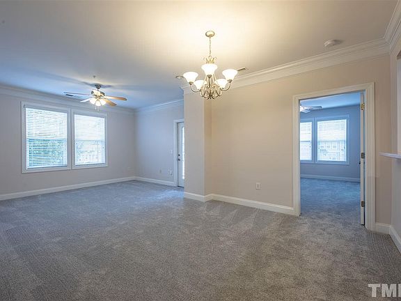 What a find in the heart of Raleigh. This 2 Bedroom 2 Full bath Condo is open with New Carpet and Paint just installed! Foyer opens to Family Dining and Kitchen. Stainless appliances. Large covered porch overlooks Pool and its a corner unit! 1 Car Garage just below Unit. Elevators are in the Building.