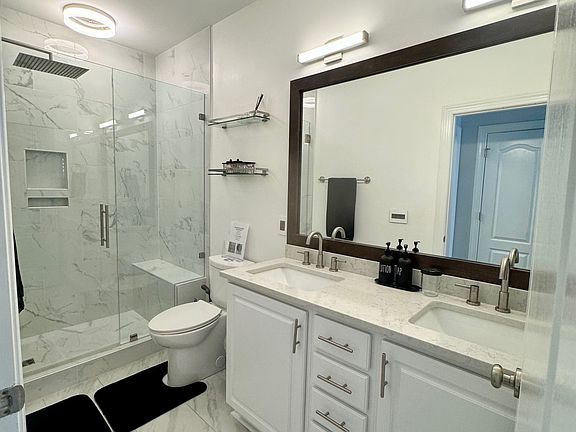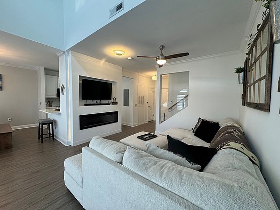 Executive furnished 2 bedroom, 2 1/2 bath condo in prime Raleigh location. Fully renovated this gorgeous condo is open and spacious with natural light and lots of storage. Living areas have 18' vaulted ceilings, beautiful wireless fireplace/tv area with dimmable lights and luxury vinyl flooring. Large 1st floor master bedroom with custom blinds, and rainfall tiled shower. Time saving kitchen with quartz countertops, mosaic backsplash and black stainless appliances. Refrigerator, washer, dryer, microwave, dishwasher, disposal and range and oven. Convenient to Wegmans, I-440, Downtown Raleigh, North Hills and Iron Works. Enjoy resort living with your own covered porch, community gated pool, gym and clubhouse. So nice to come home to!! Furnished. Water included.