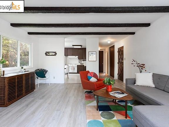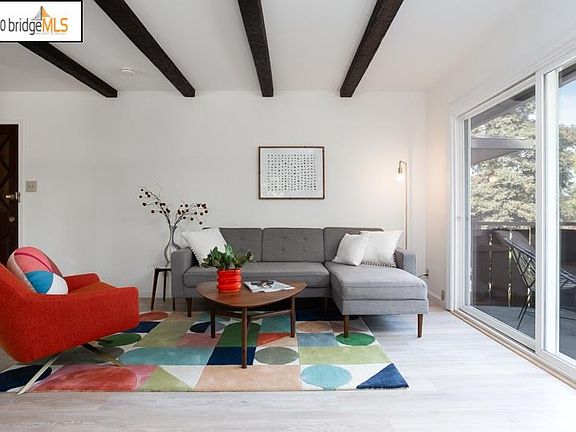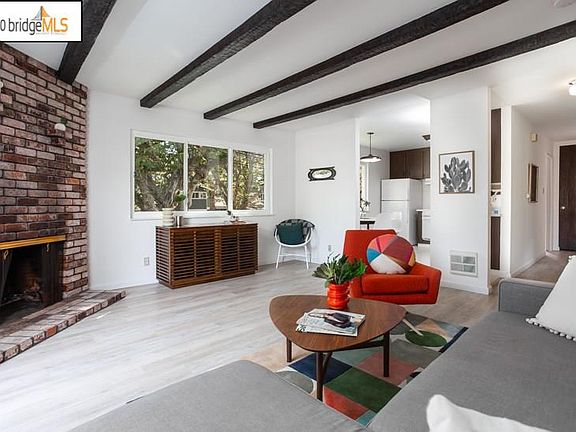 This sunny and spacious upper floor condo in this tranquil 12-unit complex in Central Alameda, offers many contemporary and Mid Century finishes.The 2 bedroom, 2 bathroom unit features new flooring throughout (9/2020), updated bathrooms, a brick fireplace and a south-facing private patio in 1,163 sq. ft. of living space (approx. per public record). Ideally located near shops, schools and all that Alameda's Small Town feel offers is just minutes away. The Alameda Beach is just one mile away and two blocks to Franklin Park with a variety of events and a membership pool. There is convenient access to Oakland and San Francisco with Ferry Service to and from the island.