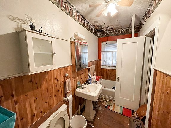 2bed 1bath FIXER UPPER WITH TONS OF POTENTIAL! Spacious lot on Crockett Rd with detached garage and storage. Hardwood floors, built-ins. Sunroom that could be used as office or 3rd bedroom. Large living room w/ fireplace, formal dining. Kitchen w/ breakfast nook. Roof was replaced approx 5 years ago. All Appliances stay and majority of stuff in the house stays. Fenced yard. Needs lots of work--Will not qualify for FHA/VA/USDA. To be sold AS-IS.