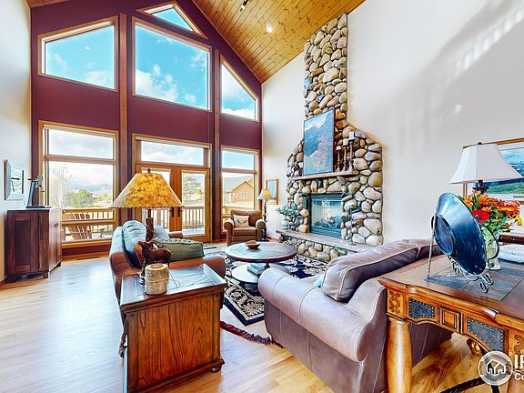 Nestled in the heart of the picturesque Reserve in Estes Park, 1401 Deer Path Ct. is a truly exceptional residence offering a harmonious blend of luxury and natural beauty. This sprawling property boasts expansive lots, ensuring ample space for privacy and tranquility. As you step inside, you'll be captivated by the breathtaking views that greet you from every corner of the house. Five generously sized en suite bedrooms provide comfort and convenience, while three distinct living spaces offer versatility for both relaxation and entertainment. The two magnificent stone fireplaces create a warm and inviting atmosphere, perfect for cozying up on cooler evenings. Enjoy the fresh mountain air on either the upper or lower decks, or unwind in the fenced-in patio surrounded by meticulously landscaped gardens. For those who love to cook and entertain, the property features an additional partial kitchen, ensuring you have all the amenities you need. The three-car garage provides ample space for vehicles and storage. The primary bedroom is a true sanctuary, offering a window seat for quiet reflection, an adjacent office for productivity, and an indoor "gazebo" for a touch of whimsy. This home is filled with high-quality features, including tongue and groove ceilings, Pella windows, in-floor heating in the bathrooms, and stained concrete patio, showcasing the meticulous attention to detail that went into its design. The property's unique location adjacent to a conservation easement guarantees that the surrounding open spaces will remain preserved, ensuring a lifetime of unspoiled views. This is a turnkey property, with most of the furniture included, making it easy to transition into your dream home. 1401 Deer Path Court offers not just a residence, but a lifestyle-a place where you can relish in the beauty of the Rocky Mountains while enjoying the comfort and luxury of a well-appointed home. Don't miss this opportunity to make The Reserve in Estes Park your forever sanctuary.