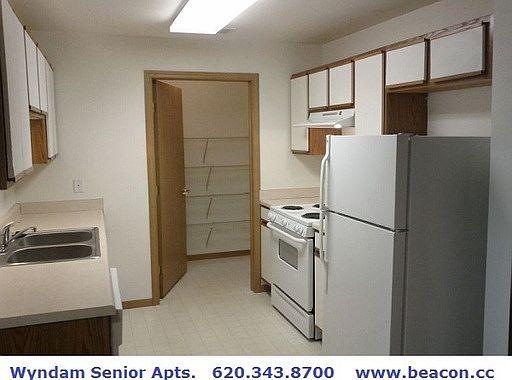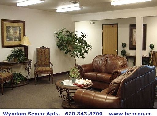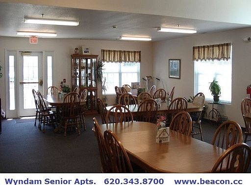 2 BEDROOM APT. FOR SENIORS 55+ AT WYNDAM PLACE, YOU WILL LOVE IT HERE Welcome to Wyndam Emporia Senior Apartments; a 55 and better community. Surrounded by the beauty and tranquility of natural landscaping, our neighborhood community definitely stands out from the crowd. Just ask our residents. A comfortable lifestyle: Quiet and convenient are the words you'll use to describe Wyndam Emporia Senior Residences. Professional management and maintenance assure your needs are not only met, but also anticipated in advance. Every apartment features amenities that you will appreciate. You'll be proud to call Wyndam Place of Emporia home. Controlled access, elevator, in home laundry, and much more - LOCAL PHONE 620-343-8700 Video Tour available at www.beacon.cc/wyndamemporia.htm Independent living for adults 55 years and over. Fully equipped kitchens with dishwashers. Custom fit window blinds and verticals provided. Kitchen pantry. Easy clean European style cabinetry. Full size washer and dryer connections in every home. Elevator and indoor mail boxes. Controlled access entry with intercom. Emergency call system. Individual water heating, central air and furnaces. Off-street parking and garages. Beautiful community rooms. Resident lounge on every floor. On-site manager and 24 hour emergency maintenance.