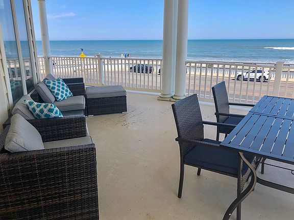 Listen to ocean from this gorgeous and spacious 3-story home located on a corner lot directly across from the north-end beach and seawall. Amazing sea views from every room! Home boasts an elevator, gourmet kitchen with granite counter tops, 2 living areas, master bedroom suite with sitting a room and sun deck. 5 bedrooms, 4.5 bathrooms & 4 decks overlooking the ocean! A must see! Summer Seasonal Weekly Rates.