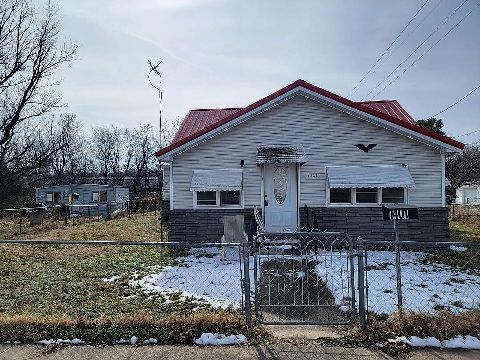 Reno for rental? Air BNB? Starter home? So many options. The home sits on a large lot. .799 acres. 3 bedrooms, one with walk-in closet, one bathroom. Large kitchen with lots of cabinets. 2 bedrooms are non-conforming. Sun room. Large utility room Fenced yard with storage building.