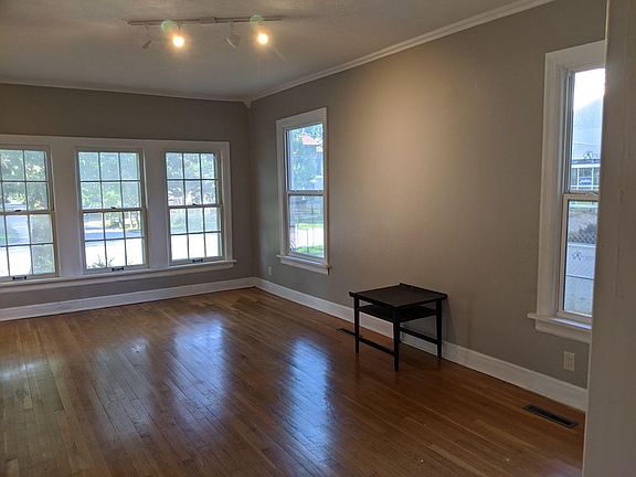 Quaint 1930s townhome refurbished in light grays and whites with new stainless steel kitchen appliances including stove, dishwasher, and refrigerator. Finished hardwood floors/tile, new windows, and a studio space in basement complete with bathroom. Washer/dryer hookups on first floor, central air and heat throughout, and private offstreet parking with plentiful mature shade trees. Property is located in the historic Rountree Neighborhood near the corner of Cherry and Pickwick - this area contains numerous up and coming restaurants, access to Rountree Grade School district, is within walking distance of MSU, and general accessibility to the larger Springfield metro area. Pictures offer view of house unfurnished and a staged example of previous decor. Owner offers deal of $200 off rental price if rent is paid before the first of the month and terms of lease are upheld. Renter is responsible for gas, electric, water, trash, and lawn care. No smoking within the property. Off-street open-air parking with two cars per tenant allowed. Pets will be determined on a case-by-case basis and will require reasonable pet rent negotiation.