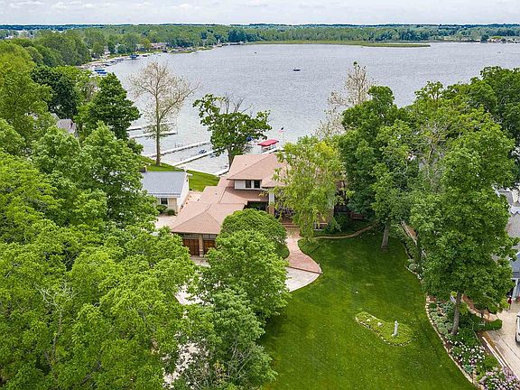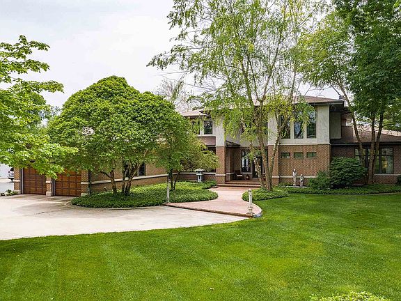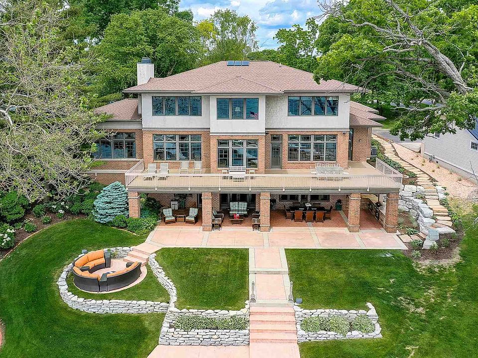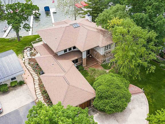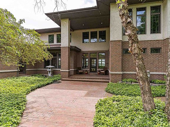 This Frank Lloyd Wright inspired Modern Prairie Style Masterpiece is perfectly situated on Syracuse Lake across the street from the Maxwelton 18 hole Golf Course. Prairie Style homes are known for their open, flowing spaces, horizontal lines, organic materials built with exceptional quality and simplicity in design. The elements are based on the house Wright designed for Frederick C. Robie and the custom furniture is negotiable. The main floor lends an open flow for entertaining both indoors and outdoors with a fabulous deck providing a beautiful Lake view. Not a detail was overlooked, from the Gourmet kitchen with granite counter tops and custom cabinetry, to the professional appliances including triple built in ovens, hidden refrigerator and dishwasher. In addition, the home boasts a large butlers pantry and two perfectly placed powder rooms for your guests to use. There is a first floor bedroom with ensuite as well as an upscale office with wall to wall built in bookshelves. Going upstairs you will enter a sitting room that could be used as a reading area or study and down the hall is the master bedroom with breathtaking views of the lake, master bathroom with large tiled shower and glass door, dressing area and a gorgeous walk in closet with custom drawers and shelving along with a built in bench. There are two guest bedrooms, each with ensuite bathrooms. There is a laundry room on this floor as well. The lower walk out level contains another bedroom with a wonderful Lake view and a full bathroom. There is also an exercise room with floor to ceiling mirrors as well as plenty of storage and a second laundry area. The remaining footage contains a large, flowing indoor/outdoor, entertaining space with an elegant bar and large gathering room with plenty of seating in a very tastefully arranged surrounding area to relax, read, converse or watch the game. Just off of the gathering area is a temperature controlled wine cellar. Just outside the glass doors is a beautiful brick covered patio that expands the width of the home and features a new outdoor kitchen with Brazilian granite countertops. There is enormous space for outdoor gatherings under the covered patio while outdoor ceiling fans cool your guests.