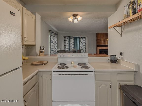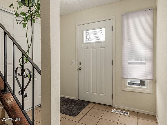 Zero lot line with low dues! Located on a quiet street close to JBER, and convenient to everything East Anchorage has to offer. Huge, private backyard with landscaping in place, backing to Fort Richardson land. No backyard neighbors! This home comes move in ready with all appliances, and features tile flooring throughout, and a wood burning fireplace. New water heater in 2023!