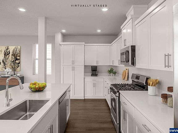 Hurry this will not last at this price! Beautiful Ashland 3-car garage home. Spacious foyer leading to Great Room concept featuring gas fireplace, dining area. Enormous kitchen with so much storage! 5-seater kitchen island! Quartz countertops, SS Gas appliances including 5-burner gas range. Main floor has laminate flooring throughout. 4 oversized bedrooms & laundry on upper level. Full bathrooms also include quartz counters & quartz surround soaker tub. Front and back landscaping with UG sprinklers and fenc
