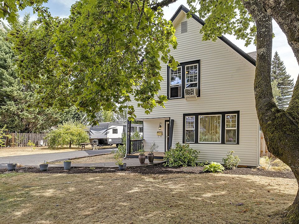 Beautiful home with large rooms, formal living and family room vintage features, pocket doors, wood floors, beautiful woodwork etc., huge yard with pool greenhouse, pizza oven and room for all your gardening dreams!