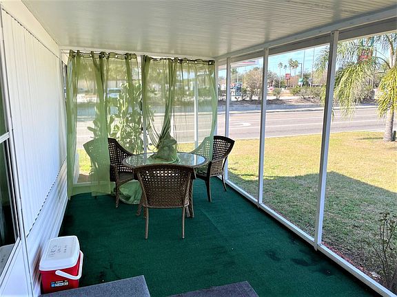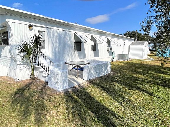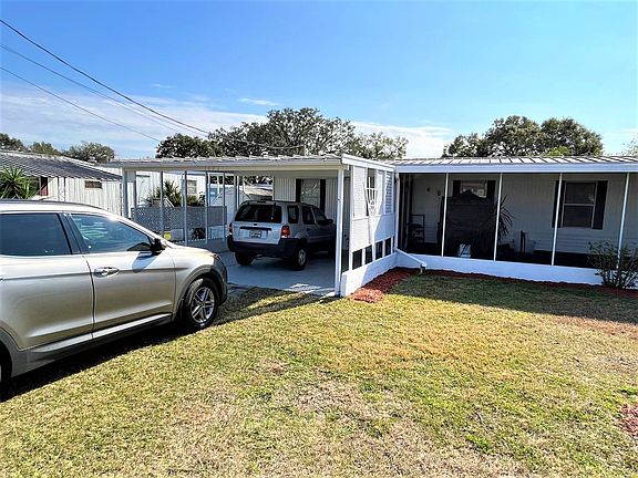 Just listed this unique and updated 2 bedroom, 1 bath home on a corner lot with double carport. This home is freshly painted inside and out, with a renovated bath with walk-in shower. The kitchen has new stainless appliances, and the home has new lighting and blinds throughout. The dining room has a beautiful built-in to display you dishes, and there is a full pantry with plenty of shelving and storage. The main bedroom has wall to wall closets, new carpet, and will fit a size queen bed. The home has a huge lanai porch on the front of the home which is perfect for morning coffee, breezes and watching the world go by. The indoor laundry is just off the kitchen and includes a washer and dryer. Just off the kitchen\laundry area is a doorway leading to a nice patio on the rear of the home. The large she features a Fantastic workshop with electricity, loaded with tools and supplies included. There is also another separate storage shed on the rear of the home with plenty of storage. This home is located 15 miles east of downtown Tampa, approximately 60 minutes to Gulf beaches and Central Florida theme parks. This is a rare, well priced find, so don't let it pass you by.