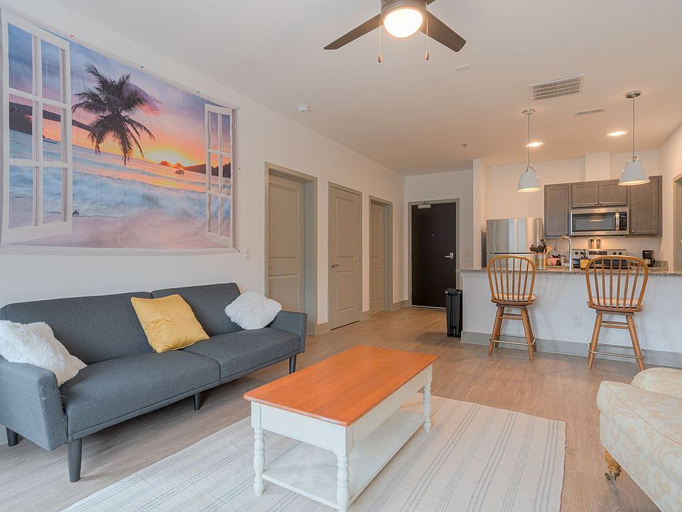 2 Bedrooms - The Flats at Uptown 1401 Giles Road - These lovely, upscale, 2 Bedroom 2 Bath, flats are located in the Uptown region of Blacksburg. You will love the modern design, high functioning space and high end elements. Each unit comes with all the appliances including a microwave, washer and dryer. There is a nice outdoor amenity space with a grill and garden area. Some covered parking is available. Enjoy the market place food and beverage store exclusively for the Flats residents. There is a BT stop along with restaurants, grocery and yoga studio nearby. Water, Sewer and Trash included as well as high speed internet and parking. This is a quiet building. Pets are welcome!