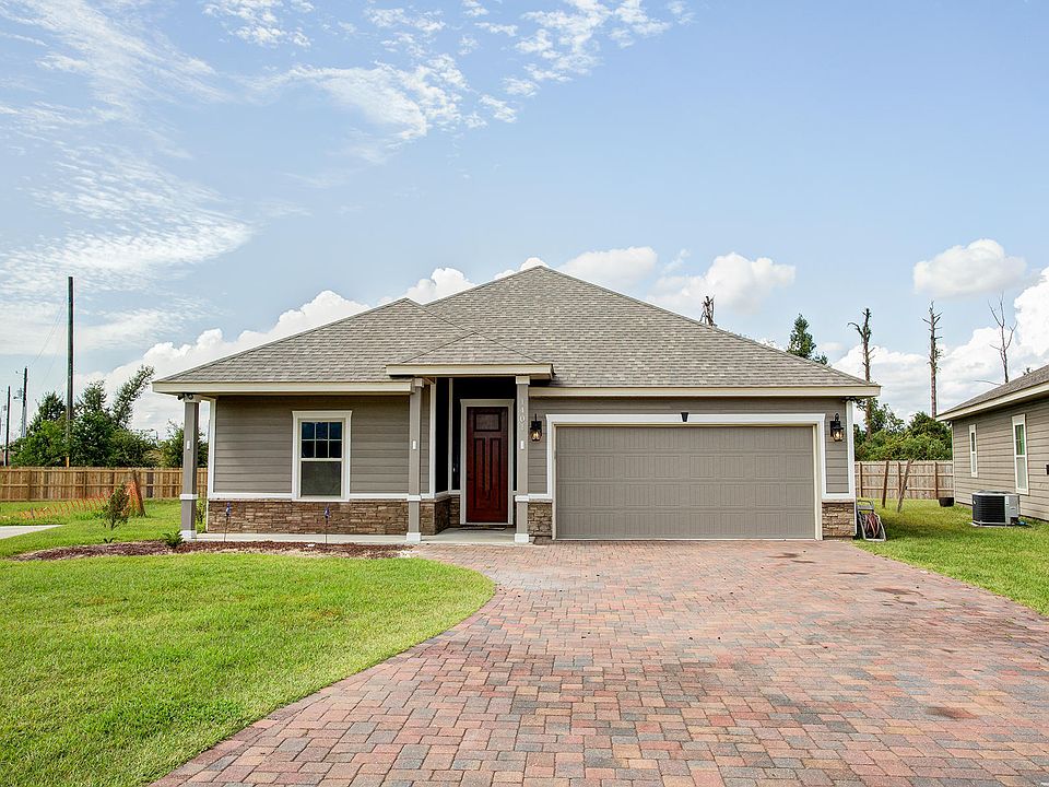 Beautiful Craftsman style 3 Bedroom, 2 Bath Home features 9/10 Foot Ceilings, 20-inch Tile Flooring throughout Main Living Area and Bathrooms. Front foyer includes wainscoting to the open kitchen, dining, and living area. The Kitchen features Custom Wood Cabinets, Granite Counter Tops, under Mount Sink, Breakfast Island, and Stainless Appliances including double convection oven. Master suite includes bedroom with double trey ceiling, large walk in closet, bathroom includes Tremendous Master Walk-In Shower, double sink vanity, and water closet. Additional 2 bedrooms and bathroom are located at the front of the house. Covered porch overlooks the backyard- great place to sit and relax. This home is located on one of the largest lots in the subdivision at the end of the cul-de-sac.