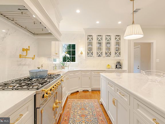 Step into the heart of Woodlea Manor and discover an exceptional residence that embodies timeless charm and meticulous maintenance. This classic colonial Wetherburne home reflects the owner's pride and care in every detail. Upon entering, the warmth of sand-in-place hardwood floors on both levels welcomes you, seamlessly flowing throughout the main level and creating an inviting atmosphere. Crown molding graces the nine-foot ceilings on both the first and second levels, adding a sense of space and proportionality. The true centerpiece of this residence is its tastefully renovated kitchen, a masterpiece redesigned in November of 2023. Modernity meets functionality with custom "white dove" painted wood cabinets and unlacquered brass knobs and pulls. Custom painted wood range hood. Paneled Subzero refrigerator and freezer. Paneled Bosch dishwasher and paneled wine fridge. By far the highlight of the kitchen is the beautiful, imported french LaCornue Cornufe custom range with unlacquered brass knobs. The stunning kitchen is finished with Calcutta Bella Marble counter, Shaws of England porcelain kitchen sink, and Rohl unlacquered brass pot filler. The thoughtful design ensures a seamless transition from the kitchen to adjoining spaces, creating an open and airy feel. The primary and guest bathrooms underwent a transformative renovation in 2015, turning them into a spa-like retreat. Luxurious finishes, elegant fixtures, and an efficient layout make it a haven for relaxation. The exterior of the residence underwent a comprehensive revitalization in 2022, with new paint, custom architectural shutters and custom copper exterior lighting in 2018. Commitment to quality and durability is evident with the two-zone HVAC systems (gas heat) replaced in 2017. TWO gas hot water heaters installed in 2013 enhancing the home's functionality. Location is paramount, with the residence just minutes away from historic downtown Leesburg, offering charming boutiques, acclaimed restaurants, and a rich cultural tapestry. This Wetherburne home in Woodlea Manor seamlessly blends classic elegance with modern convenience. Meticulous renovations, thoughtful upgrades, and the owner's care, create a home that stands the test of time. Additional features include Speed Queen washer in dryer in 2019, yard fence in 2022, custom grasscloth wallpaper in 2021 and Visual Comfort lighting in 2020.