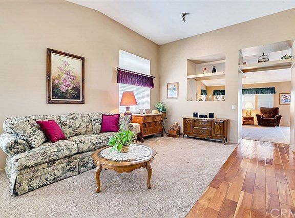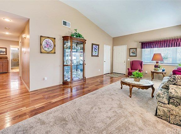 B E A U T I F U L turnkey single story home in Corona~Gorgeous oak hard wood flooring in the entry way and hall, bay window in the living room, NEW carpet in living room, family room and all bedrooms. Vaulted ceilings, neutral color throughout, cozy fireplace with a custom mantle in the family room. Light and bright kitchen that opens up into the family room and boasts granite counter tops, custom backslash, center island with sink, bar stool seating, pull out shelves in the pantry, a lazy susan, eating area with direct patio access. Nice size master bedroom includes a walk in closet, newer ceiling fan and a sliding door to the patio. Master bathroom has a relaxing soaking tub, title flooring and side by side granite sink vanity. Two additional guest bedrooms both with newer ceiling fans, mirrored closet doors and extra linen/storage cabinets in the hall. The guest bathroom has a walk in shower, NEWER shower doors, tile flooring and a granite vanity. Indoor laundry with direct access to the garage, complete with built in storage cabinets. Large pool size lot~BBQ island with sink, double wood awnings, multiple mature fruit trees include, tangelo, meyer lemon, apple and plum, perfect backyard for family gatherings and entertaining. This is a must see, no HOA, close to shopping,commuter friendly, it will not last long. Schedule your showing today!!