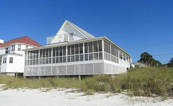 GULF FRONT BEACH COTTAGE - charming 3 bedroom, 2 bath home with wrap around screened porch, deck and balcony. Has great rental history if you are interested in a rental investment, this one comes with all reservations. Furnished and equipped and ready for fun! If sold before 4/16/2016, winter reservation must be honored.
