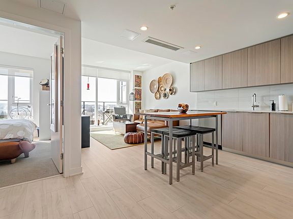 PANORAMIC VIEWS | LUXURY LIVING – Welcome to Hunter at Lynn Creek! This stunning 1 BDRM + DEN home offers breathtaking south-facing views, a spacious covered balcony, and air conditioning for year-round comfort. The sleek open-concept kitchen boasts quartz countertops, modern cabinetry, stainless steel appliances, and a gas stove—perfect for home chefs. The den is ideal for a home office, while wide plank laminate flooring adds a touch of elegance. Enjoy resort-style amenities: a gym, sauna/steam room, party lounge, BBQ area, kids' play zone, and more! Steps to Seylynn Park, Spirit Trail, rec center, shops, pharmacy, nail salon, and transit. 2 pets welcome!