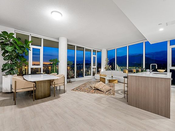 Hunter’s Trophy Penthouse - Experience the Thrill of the View. Capture stunning panoramic vistas of the North Shore Mountains, harbour, and city lights from every angle. Graciously positioned to optimize privacy, the home features floor to 10’ ceiling windows, an ideal 2-bed / 2-bath layout, topped off with an outdoor oasis spanning over 1,000 square feet. Relax or entertain in style with the best of North Vancouver close at hand - Seylynn Park, tennis courts, cafes, breweries, shopping & easy access to downtown. The elegant interior offers A/C, Fisher & Paykel appliances, quartz countertops & primary ensuite & walk-in. 3 Secured parking stalls, storage & luxe building amenities, including a fitness centre with steam & sauna rooms, complete the package.