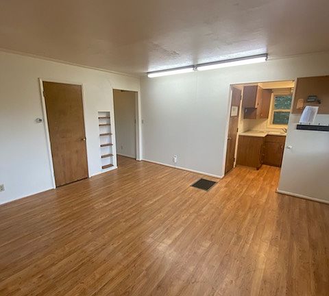 Cliff Property Management is offering this one bedroom home, with double garage. Has laminate flooring in living room and kitchen. A window a/c unit provided by owner to use, as is. New paint in bedroom and bathroom. Alley access to house. No yard to maintain. Will allow medium to small dog, no cats. With pet agreement and pet rent. Unit is move in ready. Will need renters insurance.