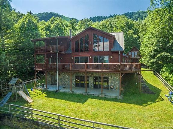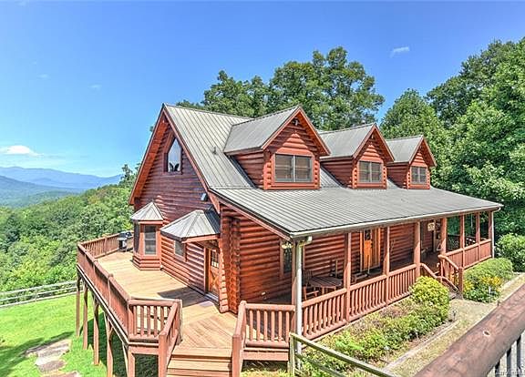 Log home living at it's best! 4 bdrm/ 3.5 bth log home privately situated on 4+ acres w/ 2 streams. Only 25 min to Asheville. Enjoy breathtaking mountain views from every room. Custom-built, cypress log home. Whole house features are (but not limited to) radiant floor heat, cypress wood flooring & slate tile, instant water heater, backup full house generator, programmable/custom lighting & full security system.The main bedroom has a 2 sided fireplace that you can enjoy from the bedroom or from the oversized jacuzzi tub & a private outdoor sitting area for sunset views. Gourmet kitchen.Lower level has a home theater, wet bar, dog room w/shower. 3 bay garage w/finished efficiency apt above. Simply too many features to list. Please ask your agent for the features list.Located in gated community includes walking trails, waterfalls, picnic areas, pond for fishing, boating & swimming. This community does allow short term rentals. Bring us an offer and make this Labor Day unforgettable!