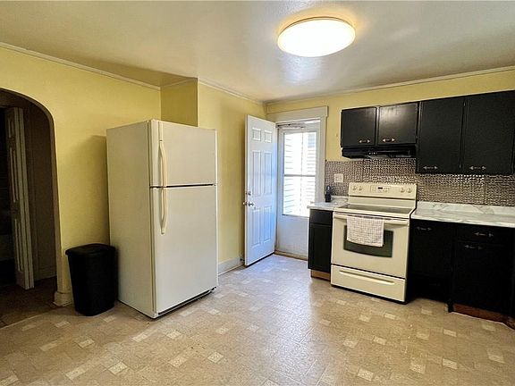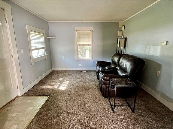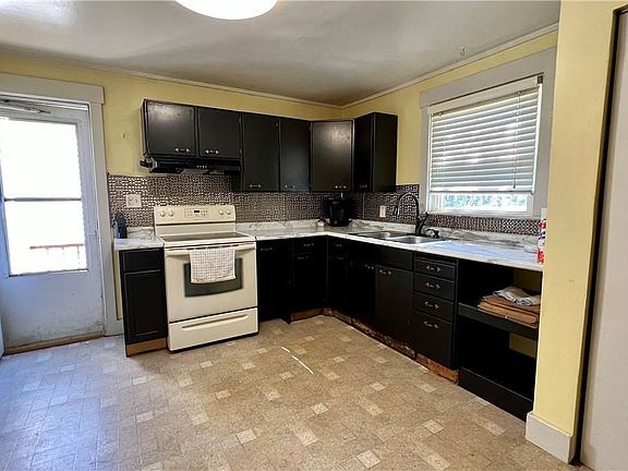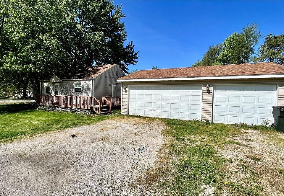 2 Bedroom, 1 Bath RANCH on corner lot. Main floor laundry closet. Eat-in Kitchen includes appliances. 3 car detached garage (720 sq ft) which would be perfect for many home projects. Vinyl-sided for a maintenance-free exterior.