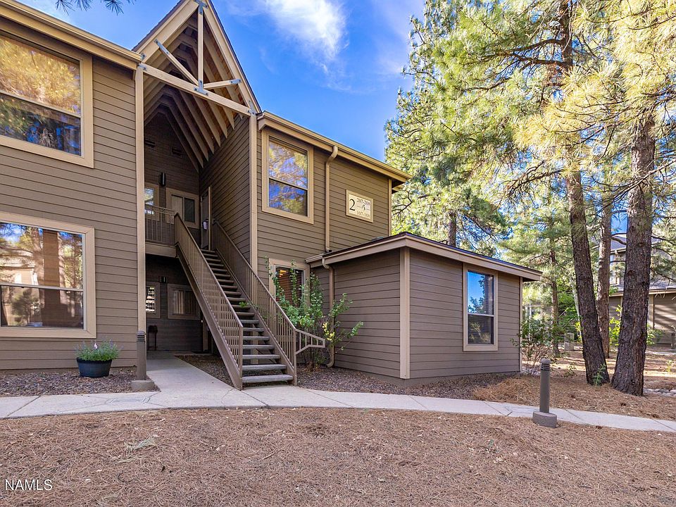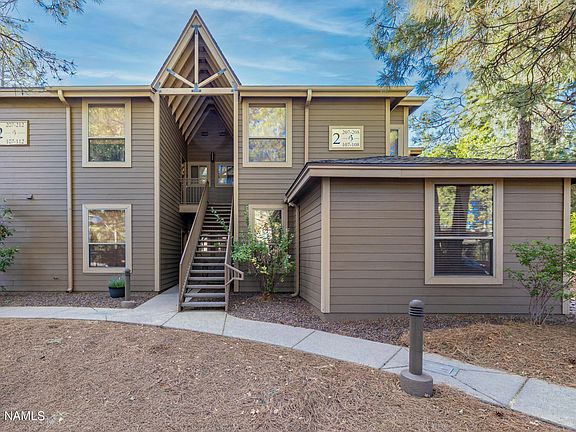Beautiful move in ready, ground floor condo with Mt Elden Views. Unique 3 bedroom, 2 bath with a split floor plan; primary bedroom with en suite includes dual sinks and a walk in closet. Open living room with built in surround sound and a gas fireplace. Oversized laundry with washer and dryer. Covered parking space included. Located close to the Aquaplex, downtown, shopping and NAU. Perfect investment opportunity or as a starter property for a first time buyer.