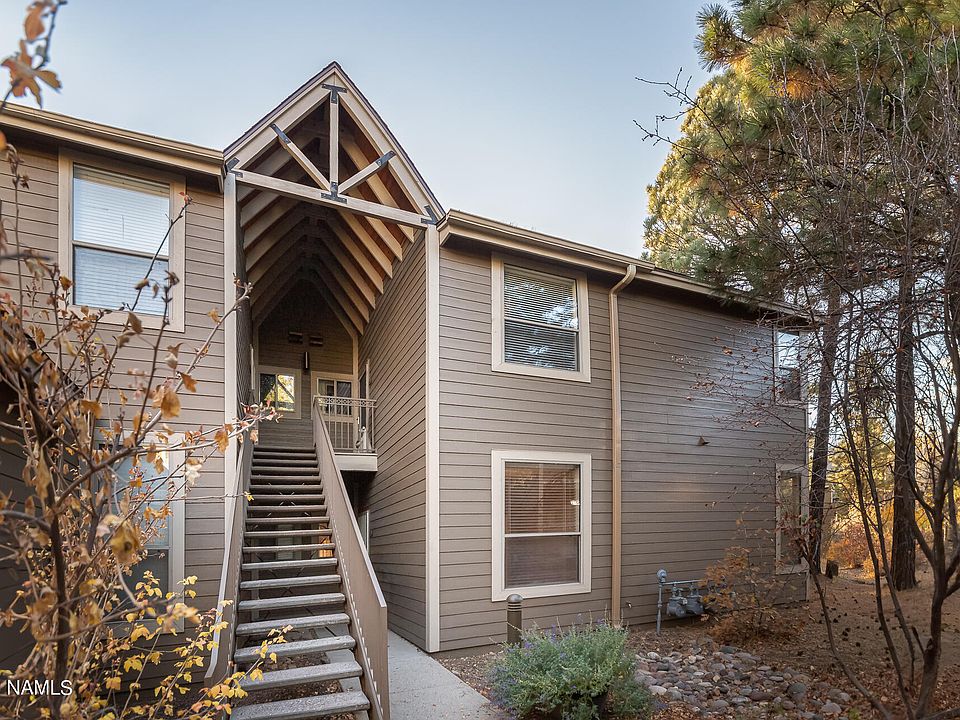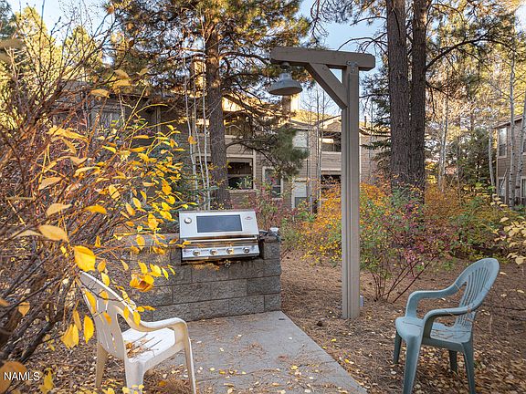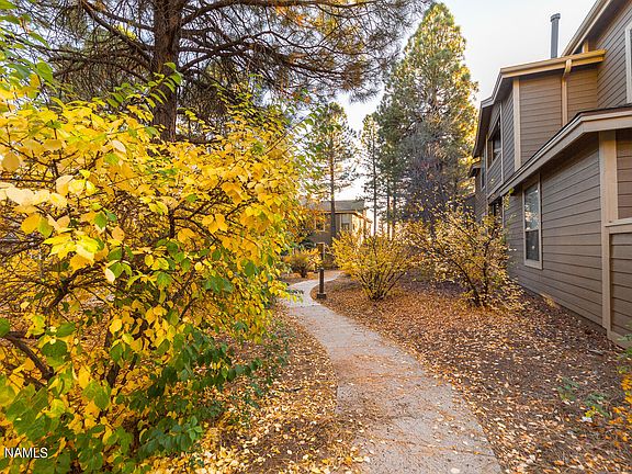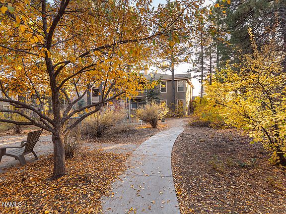 Experience the undeniable charm of this captivating ground-level condo, situated in the center of Flagstaff. Take in the beautifully landscaped paths and inviting common areas, providing a picturesque backdrop for your daily life. Whether you're cooling off with the A/C in the summer or enjoying the cozy warmth of the gas fireplace during the cooler months, this condo offers year-round comfort. Enjoy the falling leaves and crisp autumn air from the covered patio, accessed from either the living room or primary bedroom. This unit also comes with the convenience of a one-car garage with available guest parking and there's nearby access to the Flagstaff urban trail system, Aquaplex, and I-40.