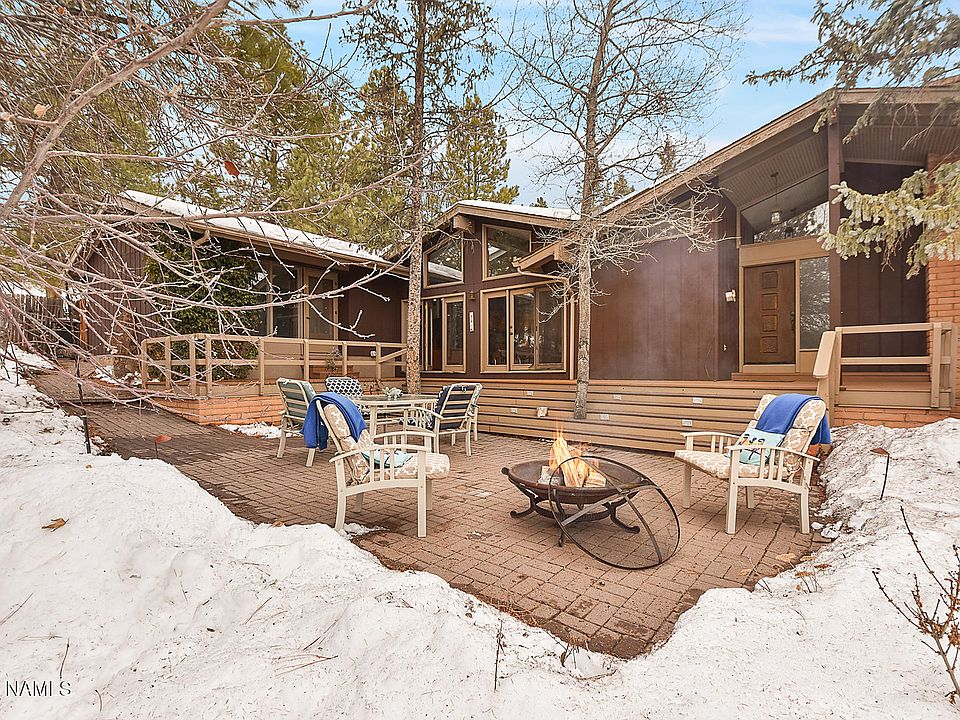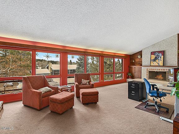 Unique floor plan, mid-century modern design in Kachina Estates (between Navajo and Rockridge) is perfect for the family who enjoys open spaces and room to stretch out. Varied angles, warm woods and colors present great natural light throughout. When it's time to entertain, you'll be ready. Here's what formerguests have had to say about 1401 N Aztec, ''Home sweet home right when you walk in you feel welcome!'', ''Multiple cozy spaces for family and entertaining'', ''Open, welcoming, spacious, and full of good cozy energy''.While having great access to schools, shopping, and recreation, the large windows allow the wooded lot to feel like an escape in the heart of Flagstaff. Enjoy games near either of the two wood burning fireplaces and soak under the stars in the outdoor hot tub.