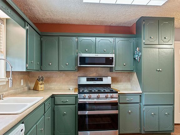 Great starter home or investment property right in the heart of Owasso! Partial garage conversion added additional sq ft to home. Fireplace, wood laminate flooring, covered back patio w/ hot tub, privacy fenced backyard. Large storage building stays.