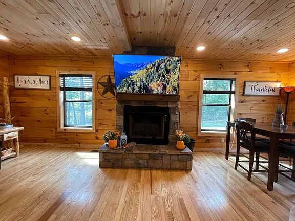 Comes fully furnished! Currently used a a short term rental. This 5 year old home is a 1700 sq ft. Log Home with a Wood burning Fireplace. The Home includes a full living space with a fully equipped kitchen , four bedrooms that includes 2 King beds, 1 Full Bed and a Twin Bed. The property has Mountain View's in a Country setting. There is a large front porch with a large cozy porch swing. Situated 2.5 mi from the Buffalo River.