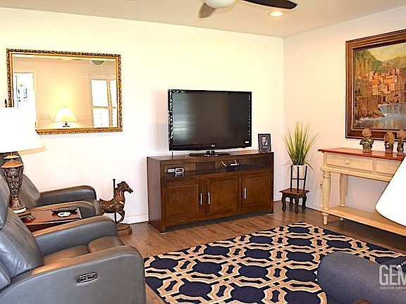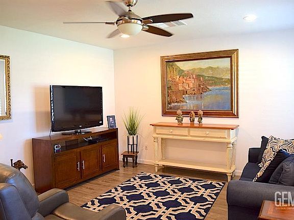 Absolutely darling Kern City Golf Course 55+ community home! Move-in ready, this home has updated electrical and plumbing, LVP wood look flooring throughout, kitchen with new cabinets and stainless appliances. The bath is a dream with fully remodeled cabinetry and spacious walk-in shower. Beautiful plantation shutters, and indoor laundry! Generously oversized one car garage with extra storage room, and a private patio. Community amenities include clubhouse and pool, and lots of recreational groups and activities to add to your fun! Washer, dryer, refrigerator are included. HOA covers all outside items: trees, gardening, and they cover water, you will have no water bill. There is nothing to do but move in and enjoy, book your appointment today!