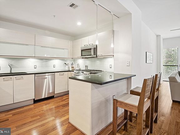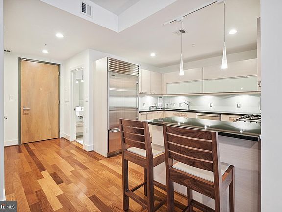 Experience luxury modern living in this spacious 1BR + DEN/2 BA Logan residence. As you enter the unit, you will be greeted by picturesque floor-to-ceiling windows overlooking what is affectionately known as the best block in Logan. Gleaming Brazilian Walnut hardwood floors grace every corner of the unit. The gourmet kitchen offers contemporary finishes such as PORCELANOSA cabinets and backsplash, a breakfast bar adorned with granite countertops, gas cooking, and top-of-the-line Bosch and Sub-Zero appliances. The bathrooms are equally luxurious, featuring PORCELANOSA vanities and tiling, Kohler fixtures, and custom glass showers. The custom closet systems allow for an abundance of storage options. Enjoy the convenience of an in-unit full-size Bosch washer/dryer. A secured garage parking space conveys with the unit! Q14 Condominiums is a premier boutique building hosting only 28 units and features every convenience, including a rooftop terrace, party room, professional management, and additional storage. This is a pet and renter-friendly community. Centrally located in Logan, you're steps away from shopping and dining such as Whole Foods, Le Diplomate, and Barcelona Wine Bar. This is a must-see!