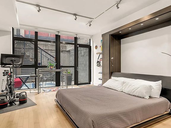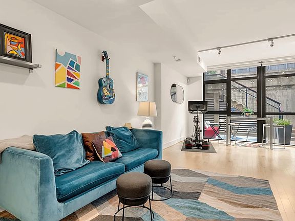 Top location - 14th St. NW restaurants and shops. Whole Foods, CVS, Trader Joes all in walking distance. King size Murphy bed with side cabinets and drawers. Additional closet with hanging space and built-in drawers. New furniture on the way. Upgraded bathroom with subway tile, walk-in shower, and barn-roller glass shower door. Upgraded hardwood floors, top appliances in kitchen, high ceilings throughout and glass wall allows for light-filled space leading to private patio. Natural light, extra storage, energy efficient.