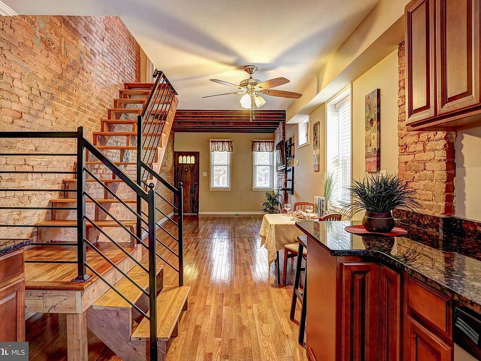 LOVELY FRONT YARD, PORCH & PARKING PAD, 2 FULL & 1 HALF bath, Custom updates open wrought iron staircase, exposed brick, gleaming hardwood floors, Samsung flat screen w/ 90 degree wall mount, granite counters, stainless steel appliances, raised ceilings, Samsung front loading washer & dryer, large porch overlooks landscaped yard, parking pad, new siding & gutters 2018, roof sealed. Owner accepts Venmo/Paypal