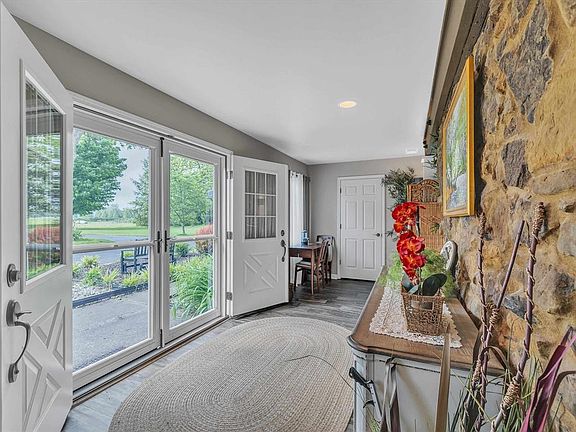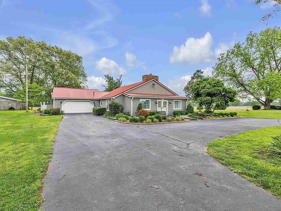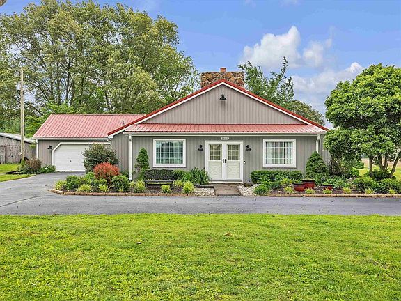This is a very unique one-story home designed by Mike Martin. It is ideal for a family or for entertaining. Several mature trees surround it. Beautifully landscaped yard. Great room with floor-to-ceiling fireplace, cathedral ceiling, and dining area. The kitchen has a built-in dishwasher, microwave, granite countertops, and ceramic tile floor. Master bedroom and bath with skylight and walk-in closet. Great room with built-in entertainment center and half bath. Laundry room. The loft area overlooks the great room and fireplace. 2-car attached garage. Covered concrete patio area with privacy fence. It is tastefully decorated and color-coordinated. There is also an additional shed - corner lot. There are great views of the countryside and Reid's Orchard.