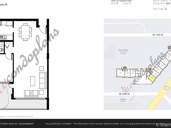 This 918 square foot condo home has 1 bedrooms and 1.0 bathrooms. This home is located at 1401 S Federal Hwy APT 111, Boca Raton, FL 33432.