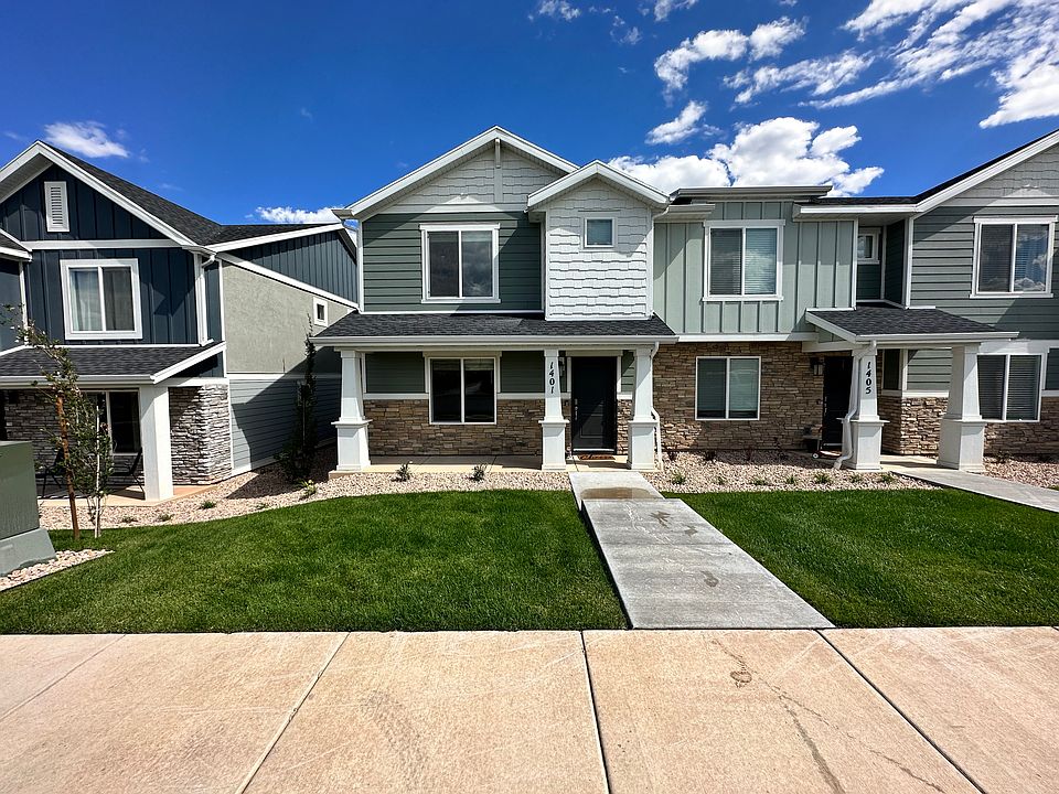 Beautiful townhouse built Nov. 2022 in the Summit Ridge Towns community. This end unit fronts the new Harvest View Sports complex where you'll find 8 Pickleball courts, a massive field with pristine grass and playgrounds. HOA has a seasonal pool, additional pickleball courts, sand volleyball courts, dog park and future site for a hammock grotto. This townhome has a great porch to watch the sunset and grill or catch the local soccer games. Inside you'll find new whirlpool appliances, a 6-foot crawl space and 2 car garage for storage. 3 beds, 2 bath. Everything in pristine new condition. Unit has big laundry room and utility room and beautiful master bedroom.