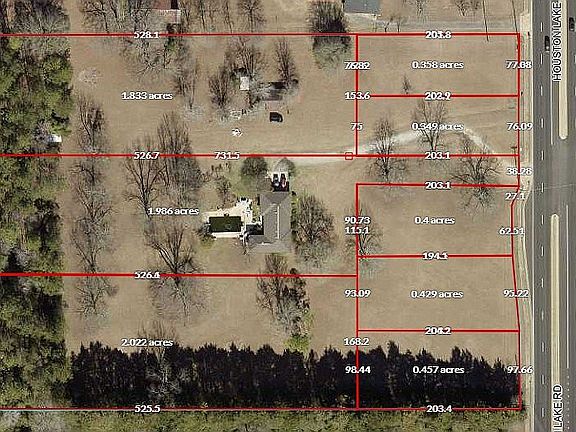 Value-add land opportunity with flexible acreage and significant frontage on Houston Lake Road. The site can be acquired in whole or in part and includes a ±2,000 SF home with pool and multiple outbuildings, offering interim use while planning future development.