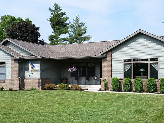 This perfectly-sized open and bright ranch-style home is located in desirous south Clinton. It has two spacious bedrooms, a third bedroom, workout or home office space, one-and-a-half baths and a large laundry room. A wonderful Wabash River view will be yours to enjoy from the east-facing front porch, and the fully-fenced back yard features a beautiful (just built)15 x 26 foot wooden deck, surrounded by pavers and stone landscape. Theres also a pergola and small pond, as well as an 8 x 12 storage shed AND a detached 28 x 24 foot garage with ample space for a workshop, storage, and to park a car - theres even a man cave corner with a wood-burning stove! The home underwent a major renovation in 2008 to update the kitchen and expand the family room and master bedroom. The family room has a fireplace and vaulted ceiling, while the master bedroom has his and hers walk-in closets. There are also built-in storage cabinets in the attached (and windowed) two-car garage.The property has a back yard fire ring, a small garden plot and a covered seating area adjoining the detached garage, and motion-sensor lighting. The water heater was replaced and a water softener added in the autumn of 2013.