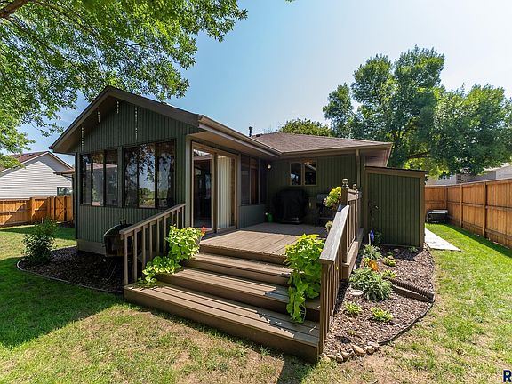 You won't want to miss out on this spacious ranch style home on the west side of Sioux Falls, close to all the great shopping at Lake Lorraine. Tucked into a quiet neighborhood, this home has great curb appeal, lots of updates & a SUNROOM overlooking your fantastic fenced in backyard. The main level features an open floor plan, vaulted ceilings and 3 ample bedrooms. The primary suite has its own private bath & walk-in closet. The garage is insulated & heated with epoxy floors and a private entrance to the basement which has a large indoor workshop! Downstairs you will find a large family room with new carpet, additional storage & a 3/4 bath. Enjoy the walking trails or follow the bridge across the creek to Dunham Park! PLUS new roof, new appliances, new water heater, AND a fresh coat of paint on the interior and exterior of the home! Come see it today!