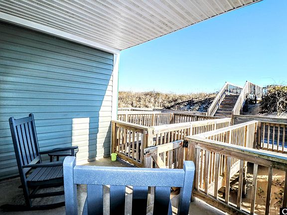This is a rare find! Oceanfront condo with direct walk out access to the walkway to the beach! Imagine waking up to the sound of the ocean in this beautifully updated first-floor condo. New heat pump just installed! With two bedrooms and two baths, plus a community dune deck and gazebo just steps from your door, this coastal retreat offers the perfect escape. Your private balcony, complete with rocking chairs, is the ideal spot to soak in the salty air and let the rhythmic roar of the waves lull you into a peaceful sleep. The ensuite bedroom also opens to the deck. There is a very nice pool area, and a stair tamer to help with your groceries and luggage. Centrally located near top restaurants and activities. New heat pump just installed!
