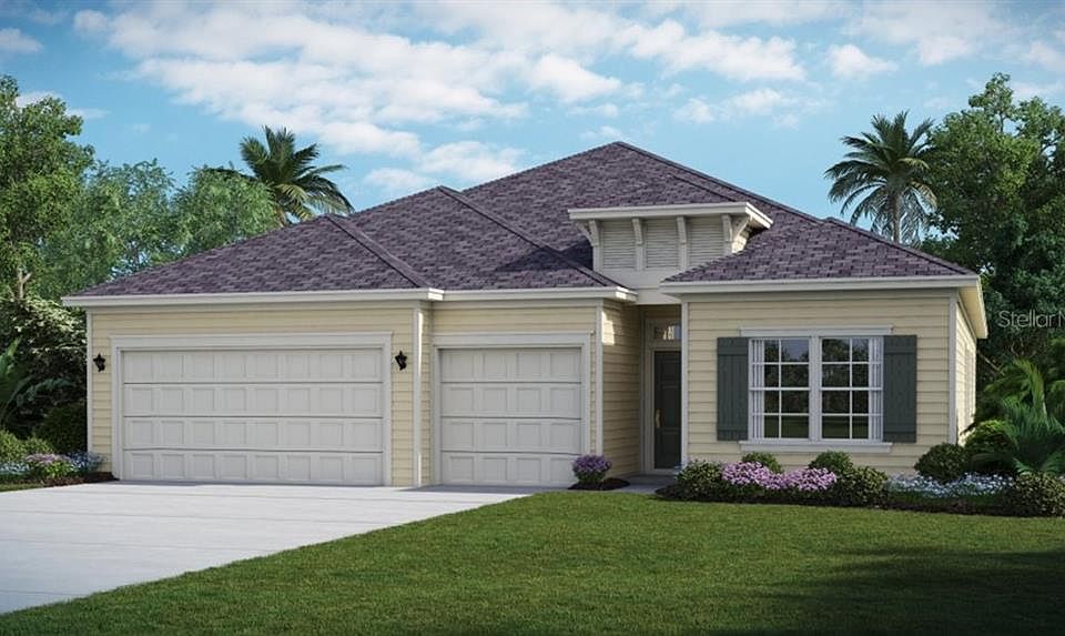 Under Construction. This single-family home is open and bright as the gathering room, kitchen and nook seamlessly flow into one another. The spacious kitchen features ample counter space and a center island, simplifying food prep. Brand-new stainless-steel appliances and a storage pantry complement the space. A formal dining room is ideal for family dinners and holiday meals with extended relatives and friends. With direct access to the covered lanai, the centrally located gathering room offers a versatile space for everything from family game nights to entertaining guests. Boasting the largest square footage of all bedrooms, the owner’s suite is host to a generous walk-in closet and a spa-like bathroom with luxury details. Separate from the other bedrooms the second bedroom suite features a full-sized private bathroom ideal for overnight guests. Two secondary bedrooms frame a shared bathroom in a convenient design. Bellechase is gated, deed restricted family community surrounded by nature and lush landscaping. Live close to the finest Ocala has to offer including top rated schools, dining, shopping, medical and MORE! (Floor plan displayed is our standard plan. Interior and exterior colors, finishes, and garage orientation WILL vary for the actual home. Stated dimensions and square footage are approximate and should not be used as representation of the home’s precise or actual size. Pricing, availability, and features are subject to change without notice as construction progresses.)