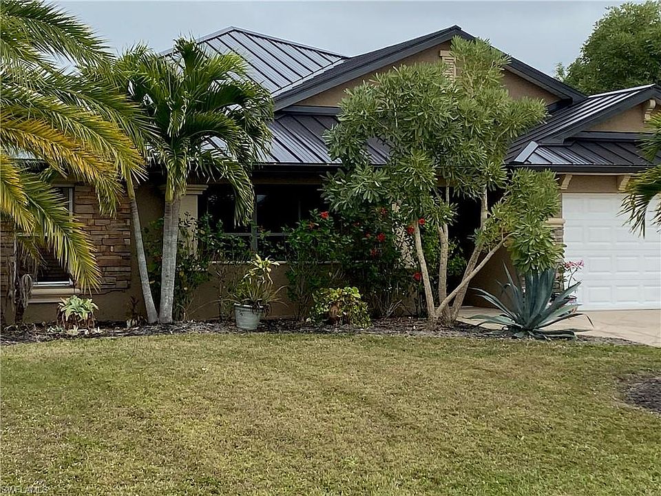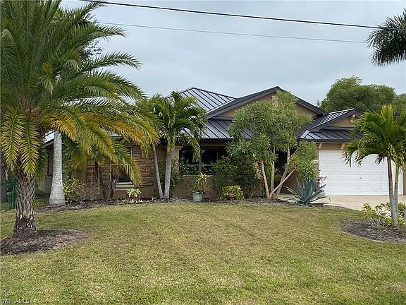 Immaculately Maintained Home - Updated 3Bed +Den/2 bath open concept split plan home, with BRAND NEW 24 Gauge Standing Seam Kynar METAL ROOF , NEW A/C System 2020, GRANITE counter top with breakfast bar, black appliances. Owner's suite offers walk in closet, extended French doors, garden tub with double sink high top vanity & a walk-in Travertine Tiled Shower. There are two nicely appointed guest bedrooms with BRAND NEW CARPET (all bedrooms). Den has BRAND NEW CARPET & FRENCH DOORS. There is an additional STUDY AREA WITH GRANITE BUILT-IN DESK. The open living room area has sliders out to a large lanai that offers a NORTHERN exposure! Big back yard ready for a pool, auto sprinklers... Also, bring your pets! The backyard is fully fenced! Indoor Laundry Room, additional sink in garage with side storage shelves. Located in a great area near Pine Island Rd and Veterans Parkway that offers all stores for shopping, restaurants, home improvement and all services within minutes from your doorstep. Schedule your showing today! ADD: New Fascia & New Bronze 6" seamless gutter today! 01-12-21!