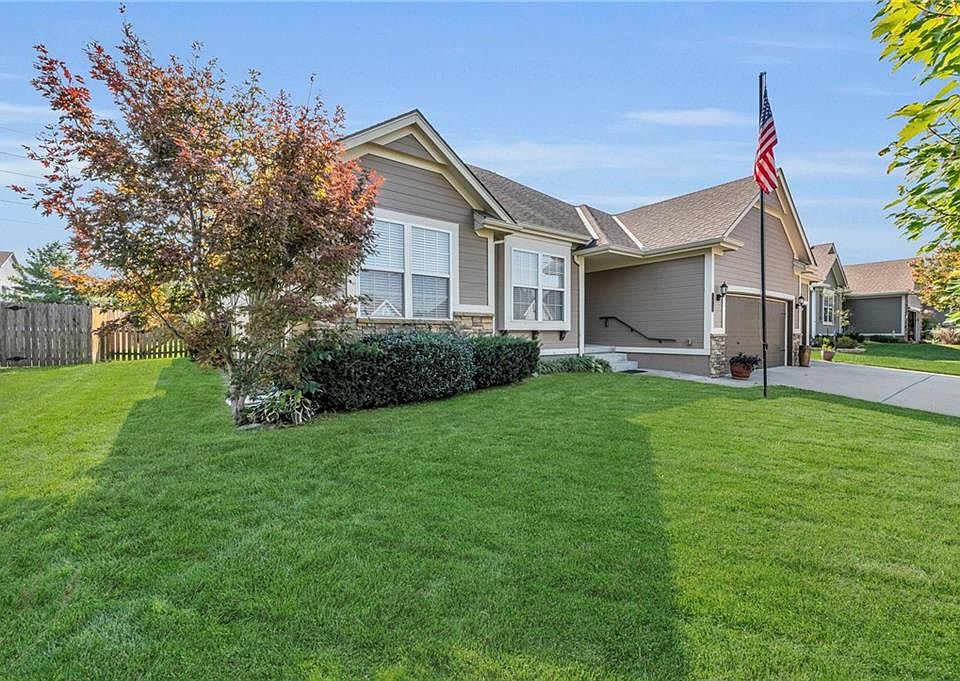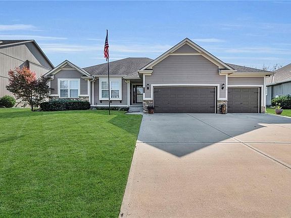 True Ranch floor plan in Stoney Creek Estates in the Lee’s Summit West district. 3 bedrooms, 2 baths, 3 car garage and driveway! 2 patio areas for easy entertaining, 1 covered w/grilling pad. Extensive landscaping w/garden beds, lawn sprinklers, & wood privacy fence. The open floor plan, with vaulted ceilings and 2 solar tubes, is light