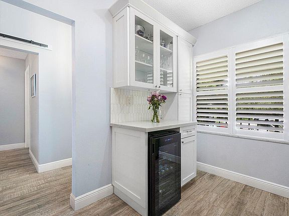 APPRAISED FOR $350k 12/4/24. Move in with equity!! Beautifully renovated 2 bedroom 2 bathroom condo in the heart of Palm Beach Gardens! From the moment you walk in you'll feel right at home. Your kitchen features quartz countertops, stainless steel appliances, white shaker cabinets, wine fridge and coffee bar highlighted by your marble backsplash. Sleek wood plank-look tile spreads throughout the entire condo. Split floor plan unit with second bedroom off kitchen featuring custom elf shelving in closet, laundry room AND extra storage space. Primary bedroom features walk in closet with on-suite. Head outside to relax with your covered screen patio with the serene canal and garden view. Plantation shutters around your Impact windows and shutters. AC 2020, HWH 2021. includes cable, internet, and water.