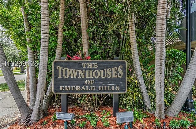 Fabulous One Story Townhouse overlooking the Emerald Hills Golf Course & Water. Live like you are at your Own Resort, w/ the Clubhouse including a beautiful Pool, Gym, Meeting/ Party Rm,& Library right NEXT DOOR all set in a Beautiful Relaxing Atmosphere .This Fabulous Townhome offers an Eat-in kitchen,Sep. Laundry Rm & 1Car Gar. The Enormous Living Rm and Spacious Dining Area Overlook the Large Patio & Golf Course. A Den/3rd Bedroom add to this great Home. The Huge Master Suite w/ Big Walk-in Closet & Lovely Master Bathrm w/ sep.Tub & Shower complete this fabulous T- Home.Lots of Extra Parking. Close to the Beach, 1-95, the Turnpike, Restaurants, Shopping, Entertainment, Downtown Hollywood, & Fort Lauderdale Airport. Don't Miss This GREAT Opportunity of Resort Style Living at its Best!!!