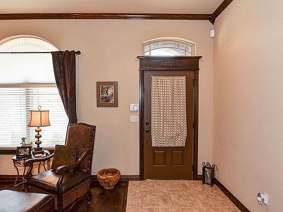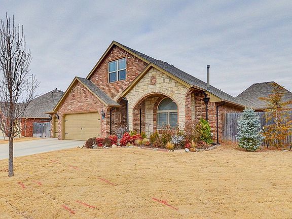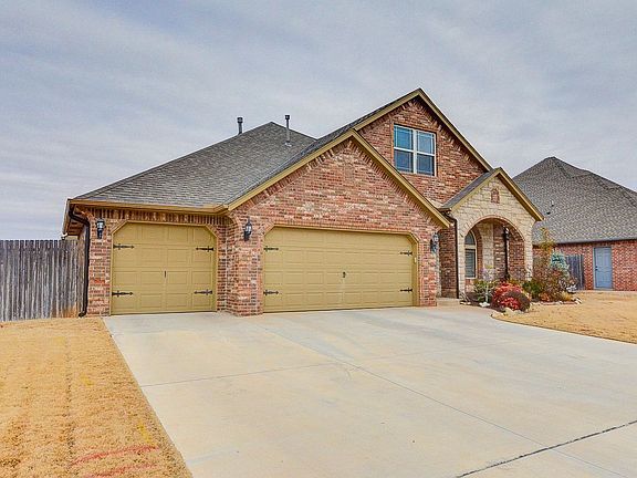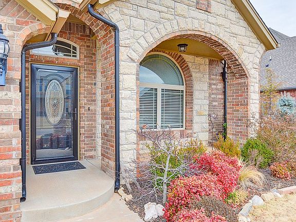 Beautiful Home located in Quiet Golf Course Community. Special touches added to this well cared for home. New Bosch dishwasher, AC tune up, garage door just serviced, Old World Guttering, Custom hardware in kitchen, Larsen storm doors, Designer paint in master bedroom and 1/2 bath. Custom stained concrete floors, 2 covered patios, storm shelter, beautiful landscaping makes this home very inviting. Custom hardware on garage doors, Cedar fence with concrete footing across the back. West side and back doors are bronzed to keep it cooler. Security system and sprinkler system, 4th bedroom or 2nd living makes a great space for a study/office if needed. You will love the special touches. Easy commute to Tinker, University or Oklahoma City. Clubhouse for fun neighborhood activities and pool to stay cool all summer. Great walking rails and lots of nature.