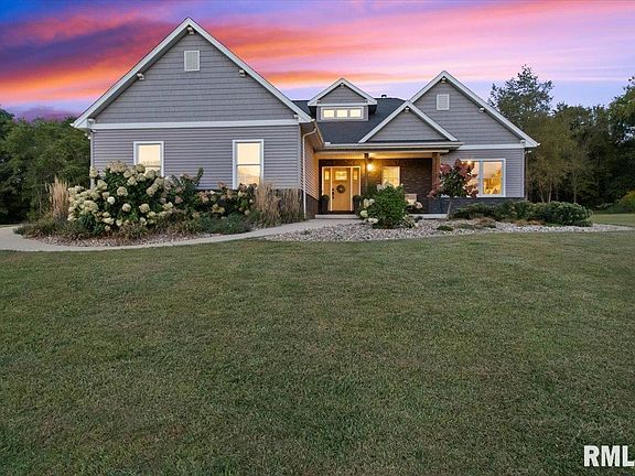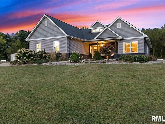 Welcome to your very own secluded slice of heaven! This custom-built, one-owner beauty is packed with personality and perched on 10 acres of pure peace and quiet. Step inside to be greeted by the great room, showcasing a wood-burning fireplace surrounded by beautiful built-ins and French doors that lead to a covered porch with panoramic views of the most perfect backyard. The layout flows flawlessly into the kitchen—the heart of the home—featuring gorgeous cabinetry, gleaming granite countertops, and an oversized island. Main floor laundry? Check. Master suite with tray ceilings and hotel-like bathroom vibes? Double-check! Downstairs you’ll find a finished basement, complete with a spacious family room, a third bedroom, and an office/den that could be converted into a fourth bedroom if needed. The outdoor space offers endless opportunities in every season and is home to deer, turkey, foxes, and morel mushrooms. Hunting is permitted, and the timber backs up to Farm Creek, drawing in those trophy bucks. If you’d rather just watch the wildlife, you can do so while crunching into a crisp apple or pear from one of your own trees. Last but certainly not least, enjoy the sprawling patio, hot tub, and solar panels that reduce your electric bill to just $14/month! Don’t let this one slip away!